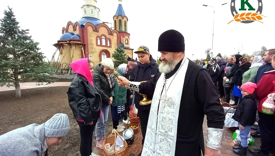 Священник Песчанокопского благочиния иерей Георгий освятил куличи у нашего храма святых Флора и Лавра.